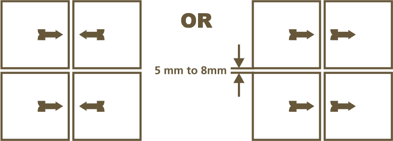 Kindly look for an arrow (-->) on the back of the tile and follow the laying pattern as shown below.